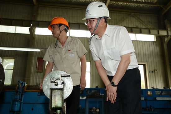 毛海波同志代表院黨政班子表示不辜負集團公司領導的期望,進一步解放思想,凝聚共識,推動全院黨建和經營等各項工作的穩步發展。 隨后,李榮庭書記一行深入一線,參觀了我院彈材分廠、特種絲繩廠、質檢中心的生產現場,并到質檢中心黨支部檢查指導支部工作,查閱了支部的“三會一課”記錄、民主評議黨員記錄等資料,并對支部如何開展黨建工作和基層支部紀檢委員如何發揮作用進行了指導。