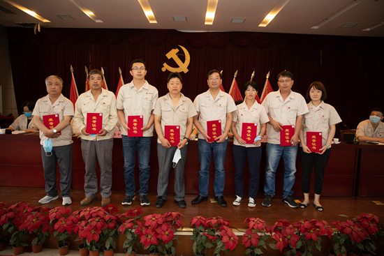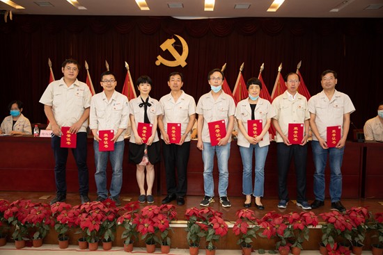 我院召開慶祝中國共產黨成立99周年暨2019年度創先爭優表彰大會 2020年6月28日上午,我院在綜合樓會議室舉行“中鋼制品院慶祝中國共產黨成立99周年暨2019年度創先爭優表彰大會”,隆重慶祝中國共產黨成立99周年,并對我院2019年度創先爭優活動中涌現出的先進單位和優秀個人進行表彰。會議由院黨委副書記、紀委書記邱文鵬主持,院黨委委員、中層干部、各黨支部書記和支部委員、院工會委員和各分會主席、院團委委員和各團支部書記、以及受表彰的單位和個人共84人參加了會議。
