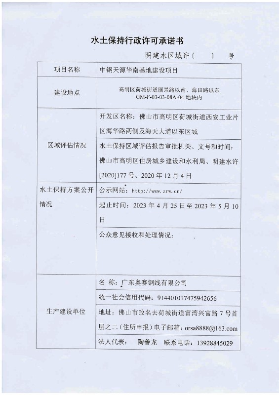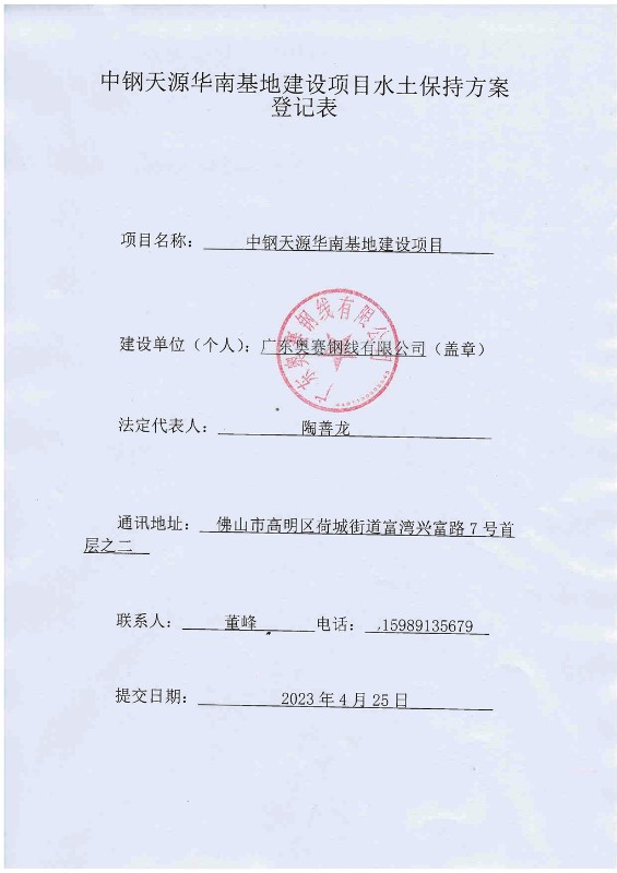 中鋼天源華南基地建設項目水土保持公示